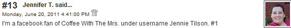 Life has been SOOO hectic {I'll explain later} but I wanted to get to these winners as soon as I could. :)